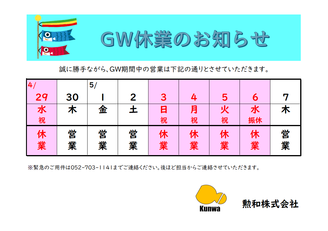 【GW休業のお知らせ】2026-04-18